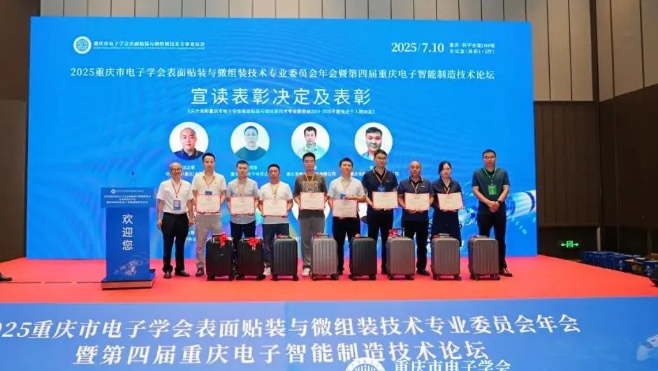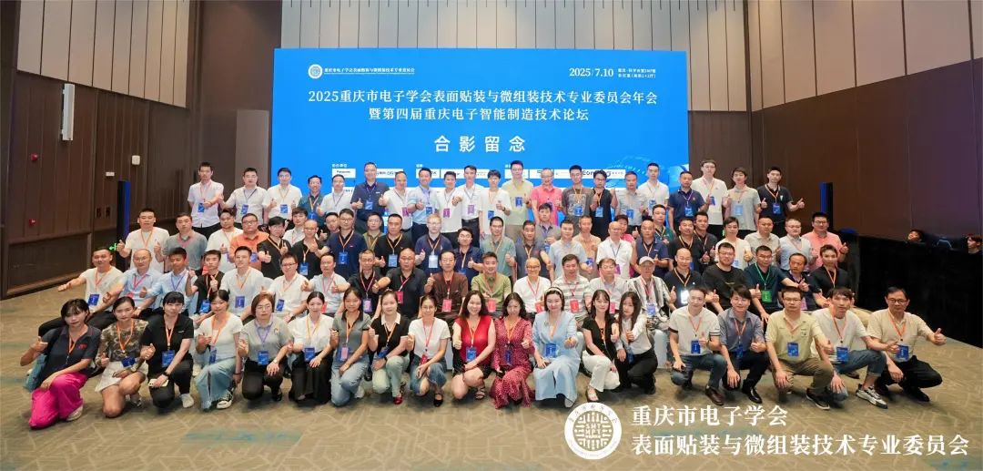 在全球电子制造产业加速向智能化、精密化转型的战略窗口期,2025重庆市电子学会表面贴装与微组装技术专业委员会年会暨第四届重庆电子智能制造技术论坛于7月10日在重庆·科学会堂圆满召开,本次盛会汇聚了电子制造领域的 700 余位业界同仁共襄盛举。